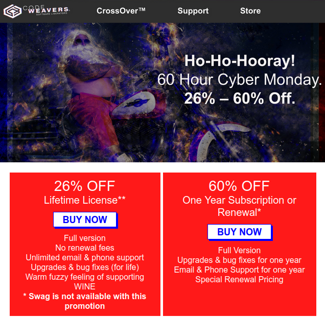 Crossover (from Codeweavers, the main supporter of Wine) is on sale